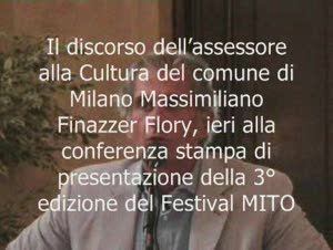 E alla faccia pure degli sponsor. Come al microfono di youmark racconta Francesco Micheli, presidente del Festival MITO, infatti, la terza edizione che esordisce oggi a Milano (di ieri il debutto torinese), punta più che mai alla partecipazione attiva, garantendo al pubblico, nonostante il minor apporto dei sostenitori, un incrementato panel di eventi, così che ognuno possa scegliere la sua compilation ideale. Complice anche il web. Di cui la musica, e più in generale la cultura, hanno bisogno per fare breccia, su giovani, ma non solo. Lo dice a chiare lettere l’assessore alla Cultura del comune di Milano Massimiliano Finazzer Flory nel suo discorso (che vi proponiamo) ieri in conferenza stampa. E se, come detto, gli sponsor sono stati un po’ meno generosi (11 milioni di euro il budget complessivo) il monito è ‘no allo sciacallaggio’. Annunciando già che anche il 2010 avrà il suo MITO.