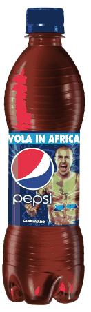 Il corpo dipinto di Cannavaro, decorerà tutte le bottiglie di Pepsi e Pepsi Twist per promuovere il concorso 'Vola in Africa con Pepsi'. I consumatori avranno la possibilità di vincere una T-shirt al giorno Edun Live del brand di moda etica Edun, fondato da Bono e da sua moglie, una Xbox 360 a settimana e un safari in Kenya. Per partecipare bisogna acquistare le bottiglie di Pepsi e Pepsi Twist, inviare il codice sul retro dell’etichetta via sms o inserirlo sul sito. Inoltre, per celebrare l’Africa e il calcio, Pepsi ha realizzato delle lattine limited edition con i corpi dipinti di Cannavaro, Messi e Drogba.